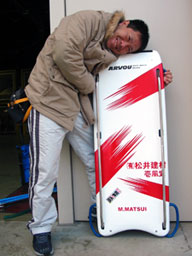 バリバリにサーキットを走っていた松井選手。パナソニック・トヨタ・レーシングをイメージしたデザインだとか。